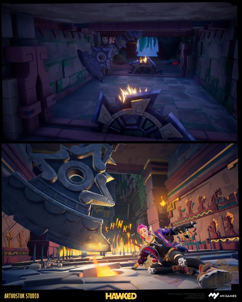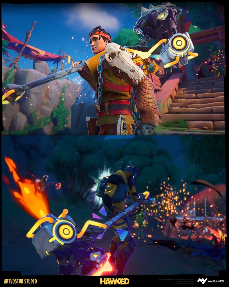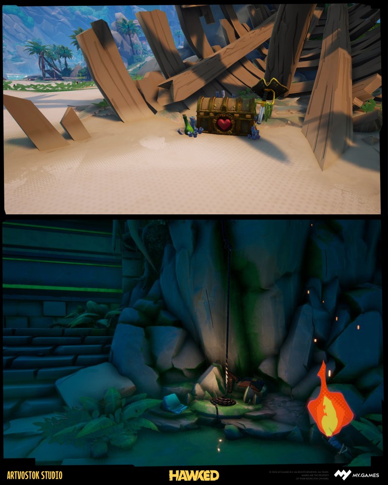 When you first look at HAWKED, you think that it’s one of those adventures where treasure hunters burst through the jungles, hunt for ancient relics, smash enemies through the plenty of chaos — and you’d be on point about that. This game is full of personality, which means t’s a the perfect playground for bold concept art, creative level art, and 3D art that doesn’t take itself too seriously.